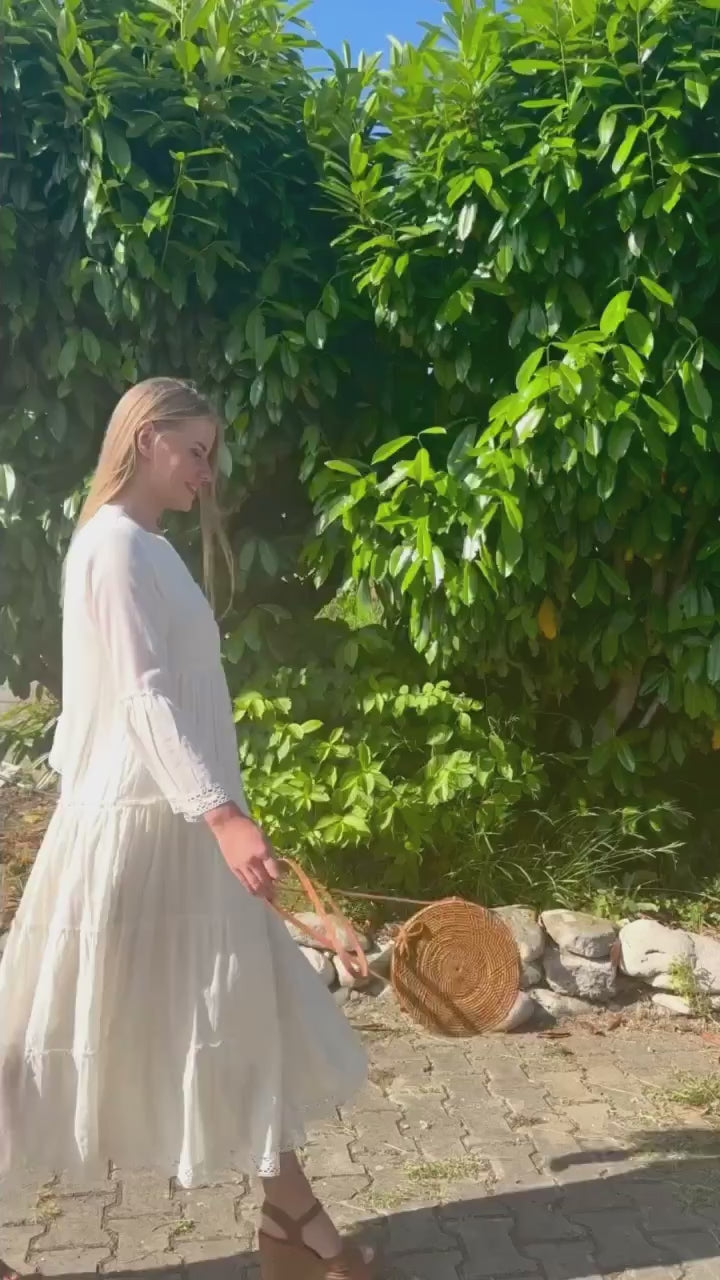 Langärmliges Voile-Maxikleid mit Guipure-Spitzendetails