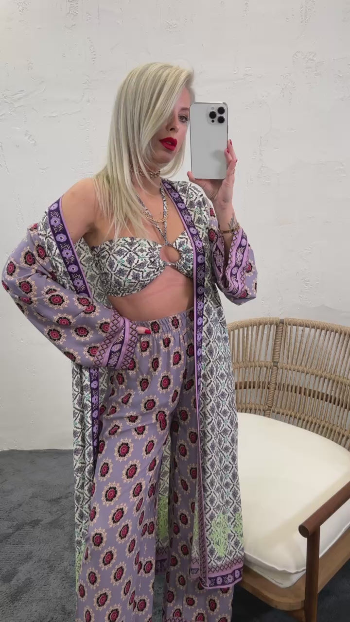 Produktdetails: Allover-Druck, Mandala-Druck, ethnisches Design, elastischer Bund, geraffter Bund, dreiteilig, Paisley-Druck