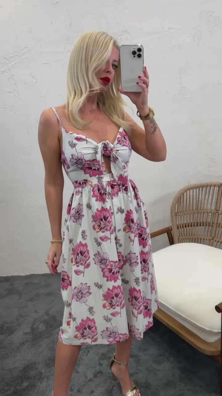 Sweetheart Neckline Strappy Midi Dress In Floral Print